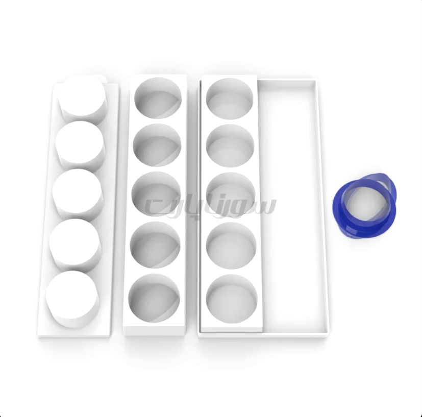 - ابعاد هر حفره قالب: قطر ۶.۵ × ارتفاع ۴ سانتیمتر