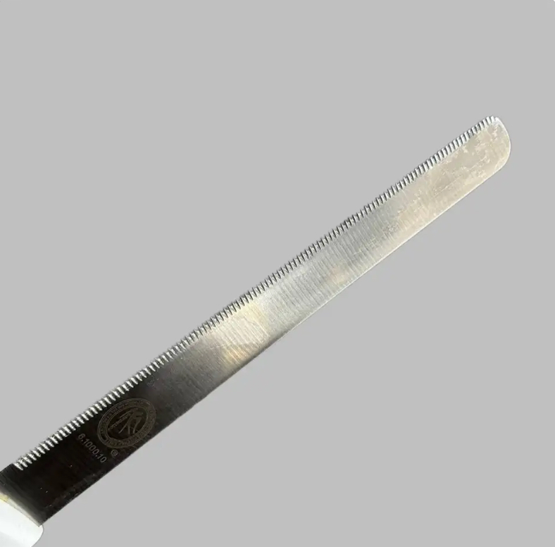 دستهبندی: ابزار خامه کشیبرچسبها : چاقوی شیرینیپزیچاقو دندهریز حرفهایچاقو برش کیک و نانجنس تیغه: استیل درجه یک دندونه ریزابعاد: ۲۵ سانتمناسب استفاده: برش انواع کیک و نان