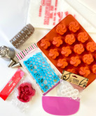 اقلام موجود در پک : قالب سیلیکونی به انتخاب شما ، قیف ۱۰۰ عددی مستر ، کپسول حلوا ، پانچ حلوا ، دو عدد ماسوره پر کاربرد ، ماسوره زفیر ، مولد گل ارکیده ، کاردک ، مهر حلوا