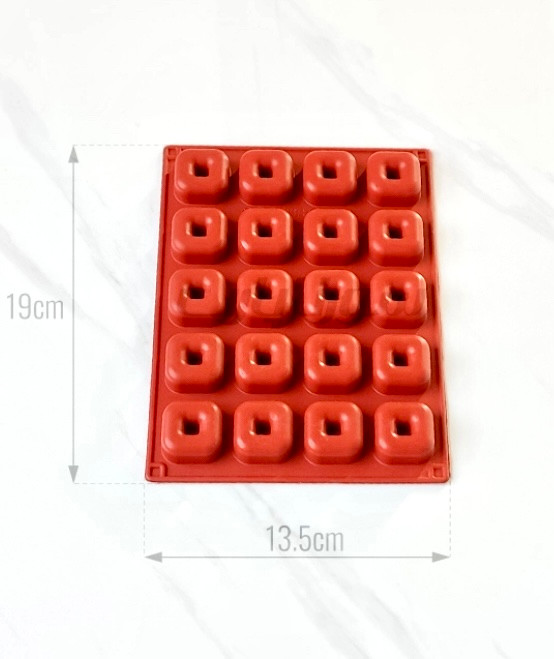 قالب مینی دونات مربع با طراحی خاص و فانتزی، مناسب برای تهیه حلوا، شکلات، نبات، ژله، مینی ساوارین و انواع دسرهای قالبی با فرم منظم و جذاب است. این قالب از سیلیکون نرم و باکیفیت ساخته شده و برای استفاده خانگی و حرفهای بسیار کاربردیست.
